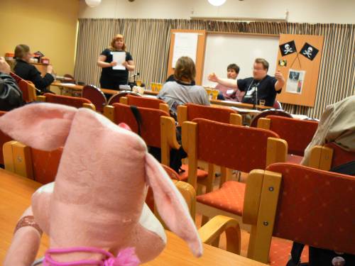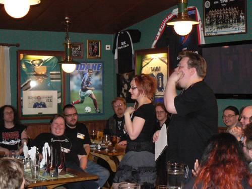 - Were you at the bar, I asked? - No, said Dr Ipa. I had to rest so we used that time efficiently and read the short stories of Tähtivaeltaja competition. - Are you serious? Even though the Guest of Honour of Eurocon 2011 was hosting the show? - Who? |